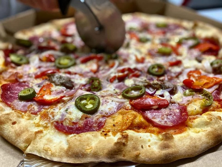 sos pomidorowy, ser, cebula, papryka, bekon, papryczki jalapeno